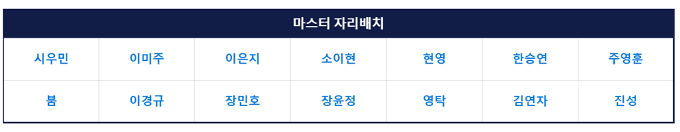- 현역부 X : 고정우, 박광현, 손빈아, 임찬, 추혁진